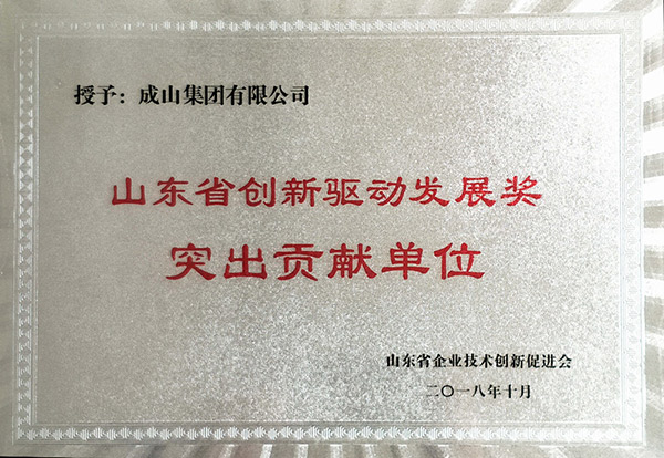 山東省創(chuàng)新驅動發(fā)展突出貢獻單位獎